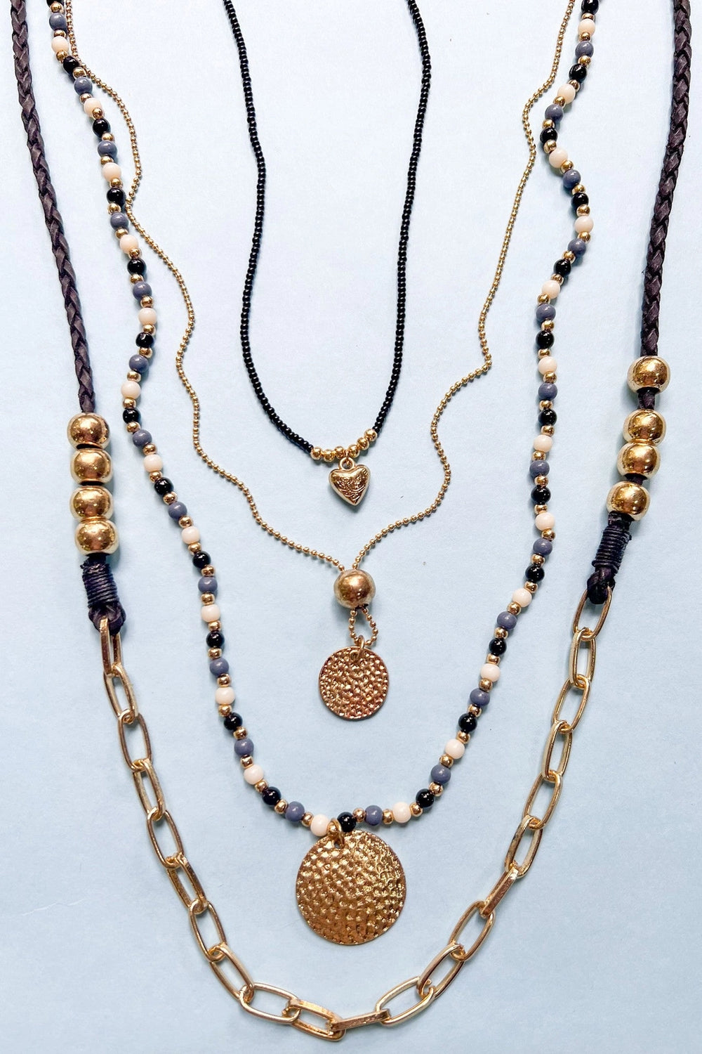 It's designed with mixed chains, beading, and stunning gold tone charms at center for the ideal finishing touch.