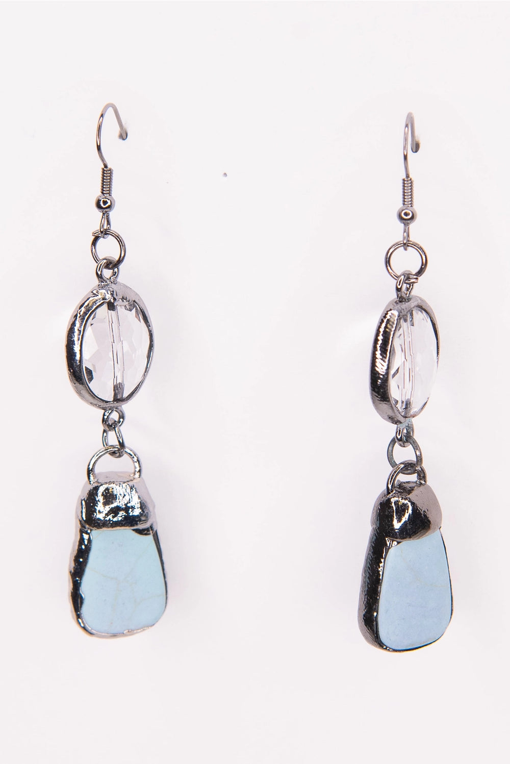 Dangle earrings with a teardrop style stone and faceted glass crystal.
