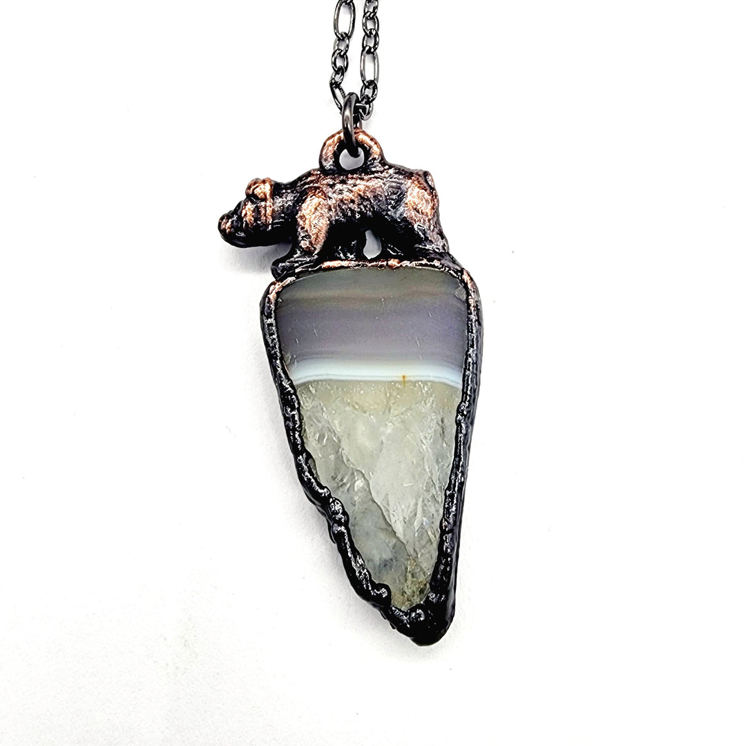 One Crystalline Agate Bear Pendant on a 20" soldered gunmetal chain.