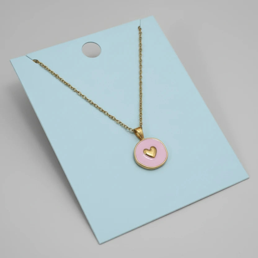 Dainty Enamel Pendant - Pink Heart