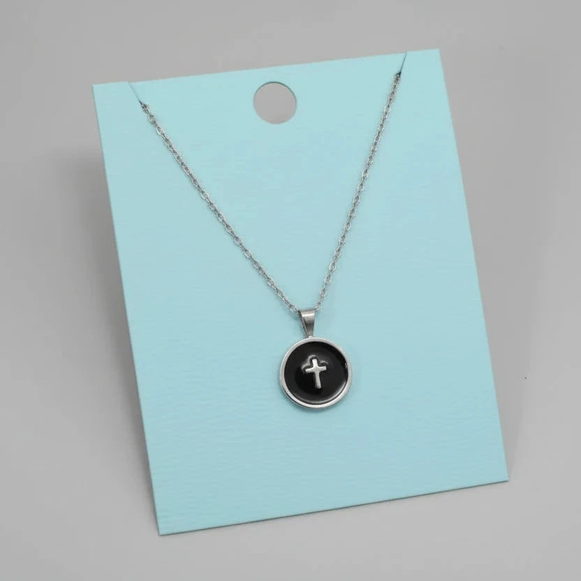 Dainty Enamel Pendant - Black Cross