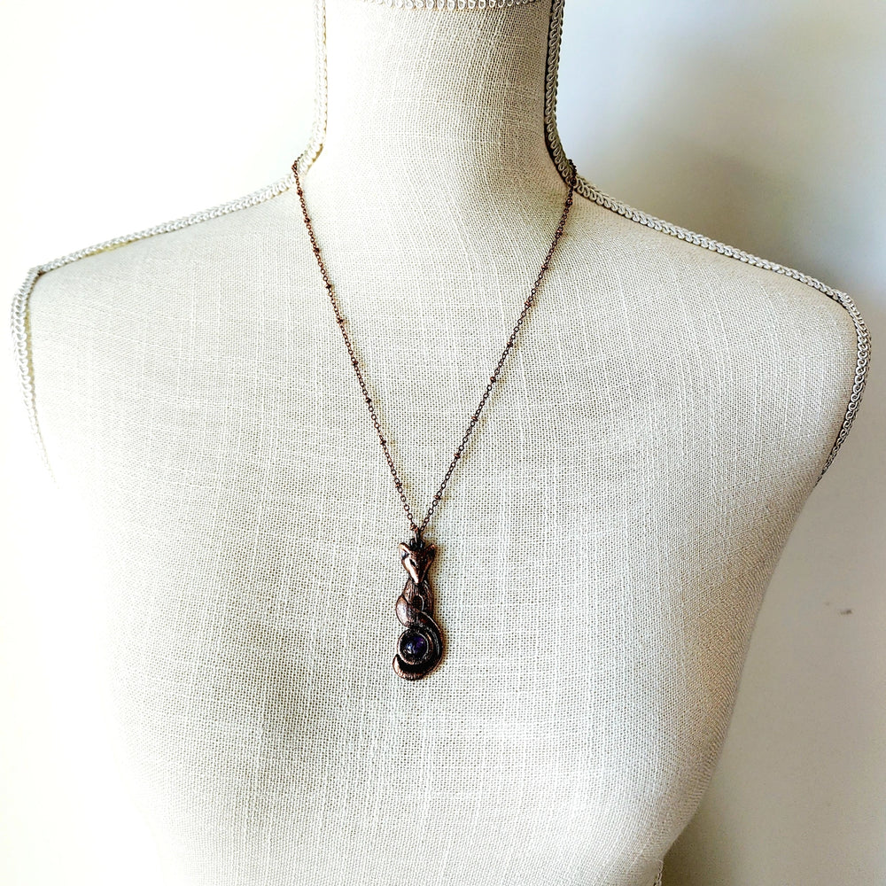 Amethyst Fox Pendant Necklace complete on a 20” soldered copper chain.