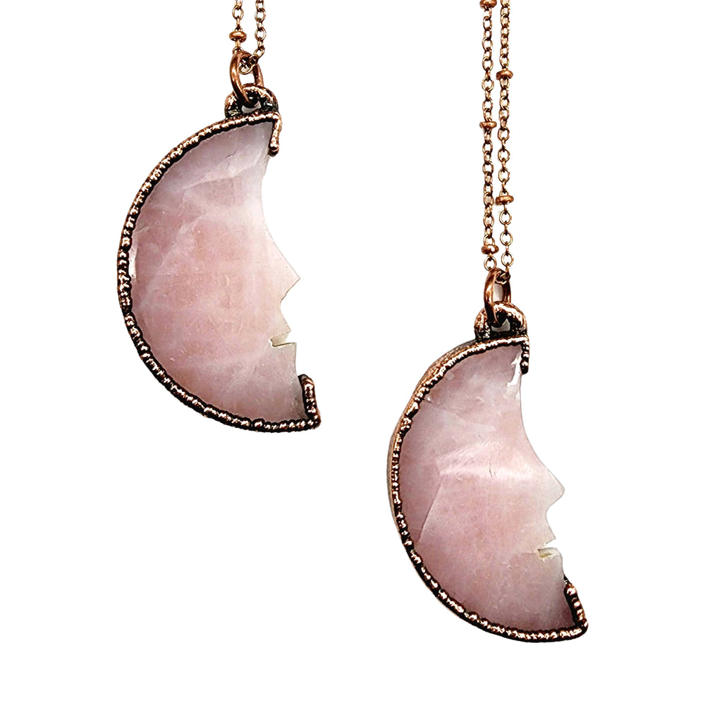 One copper electroformed Rose Quartz Man in the Moon complete on a 20" soldered copper chain.