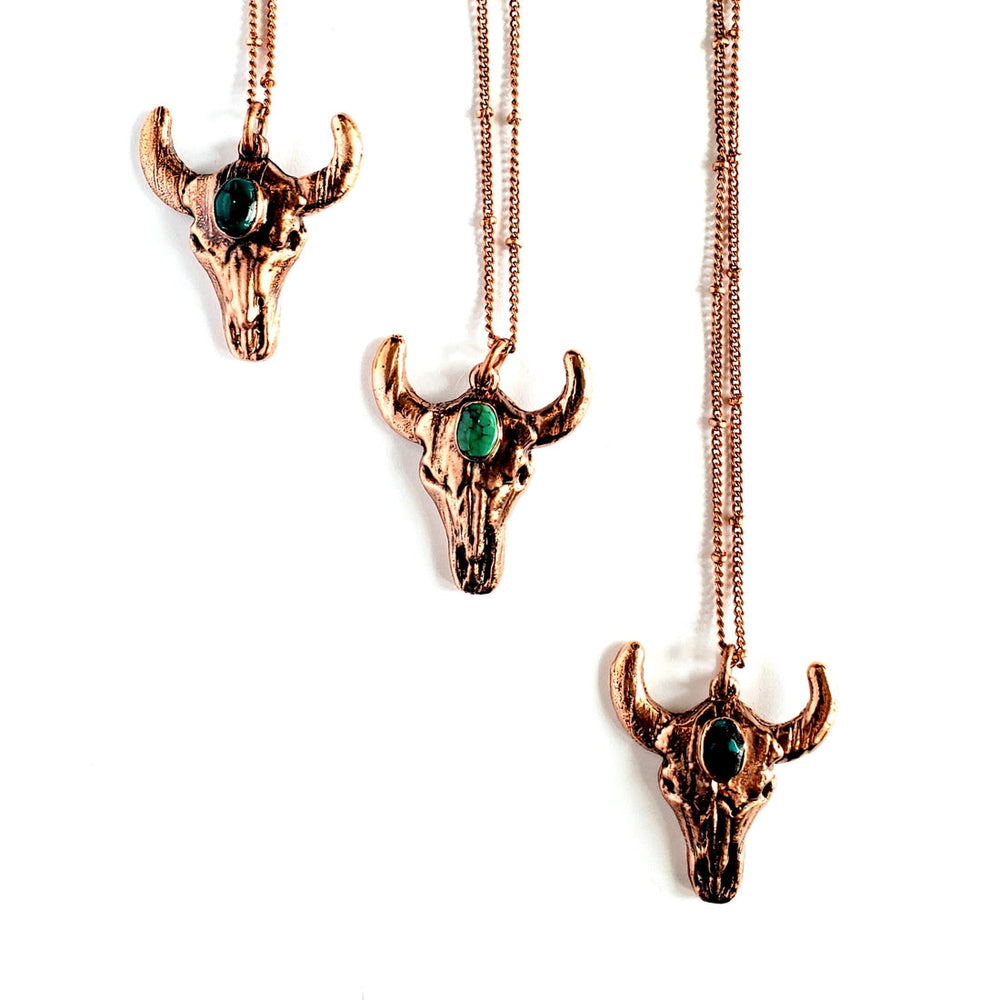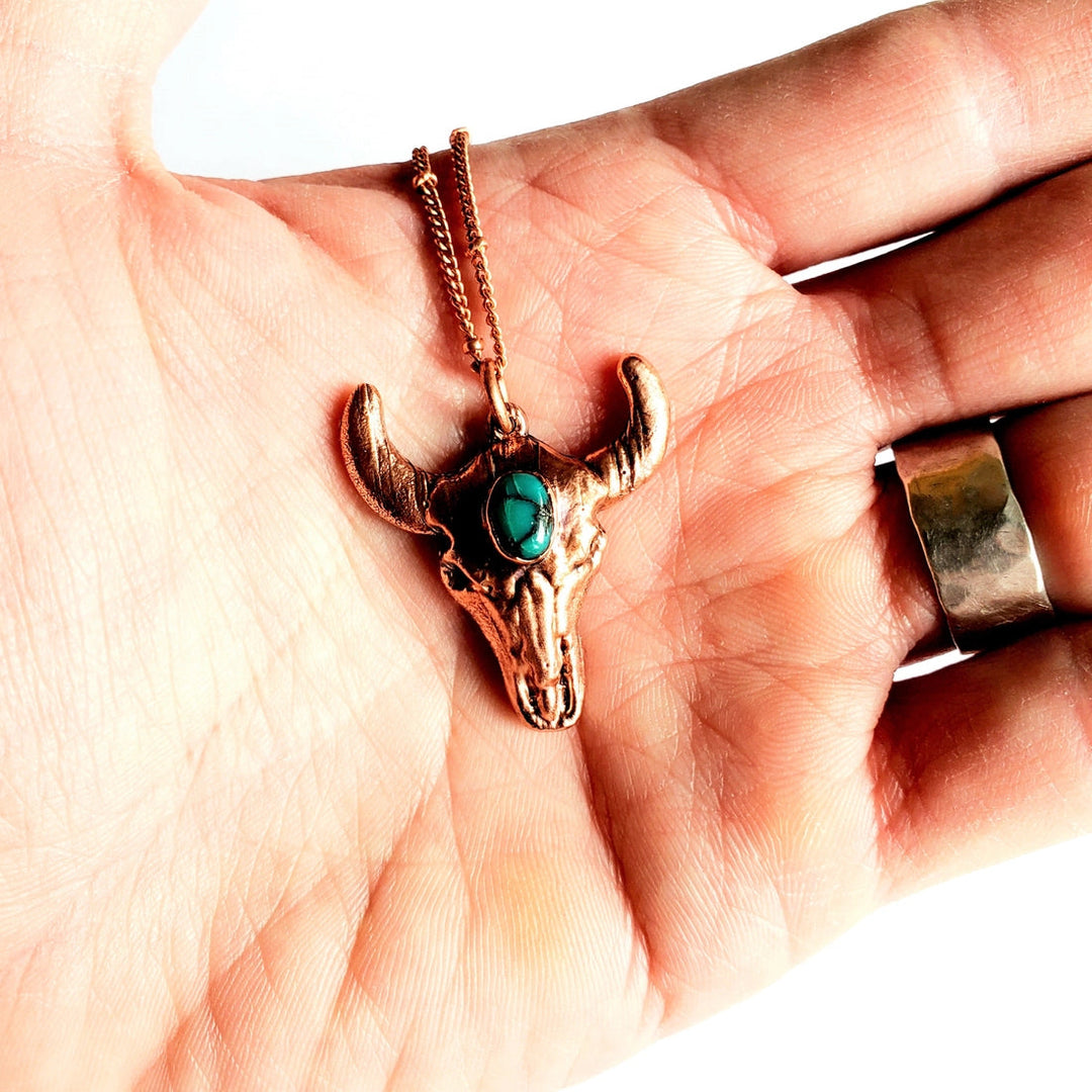 Merging Metals Turquoise Bull Skull Necklace