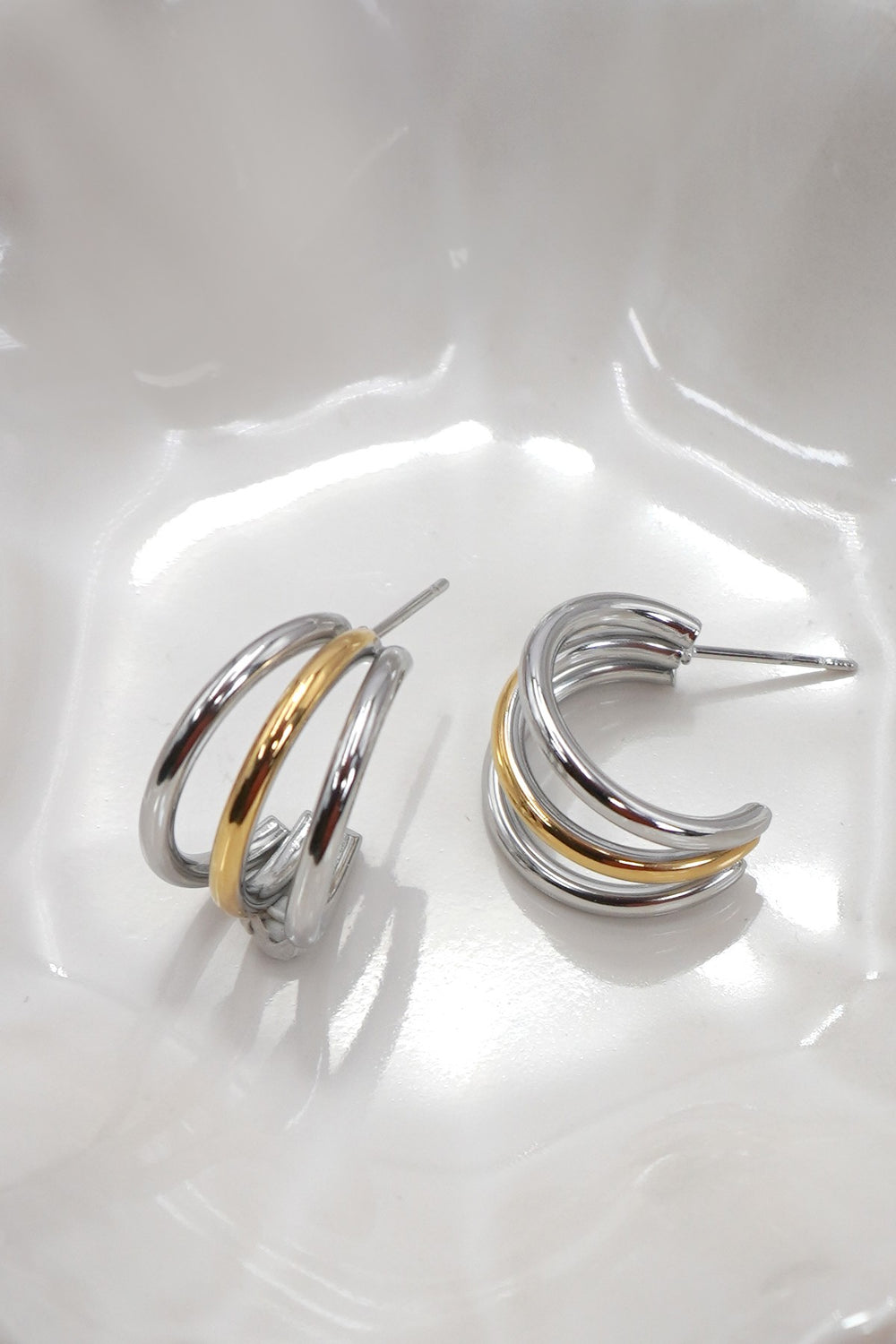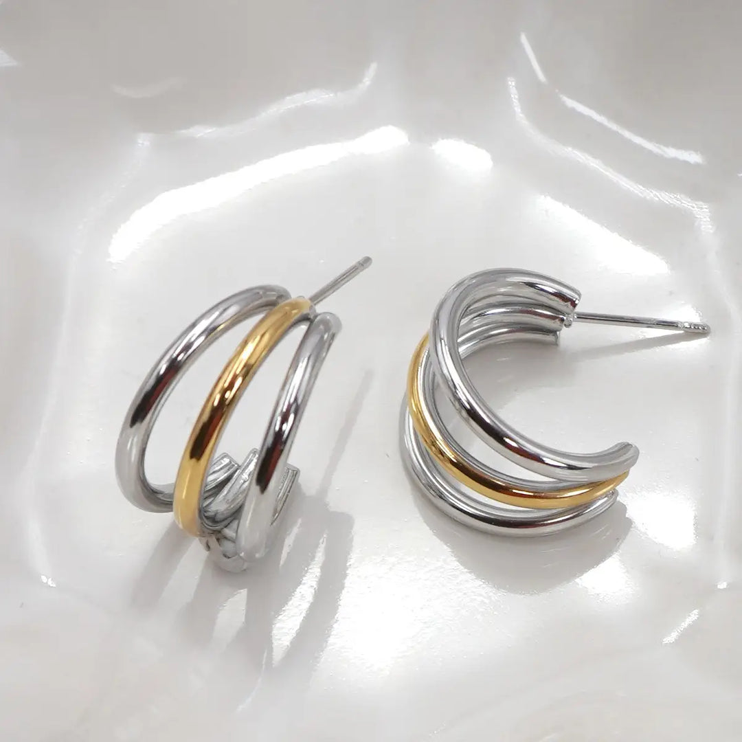 Two Tone Triple Hoops
