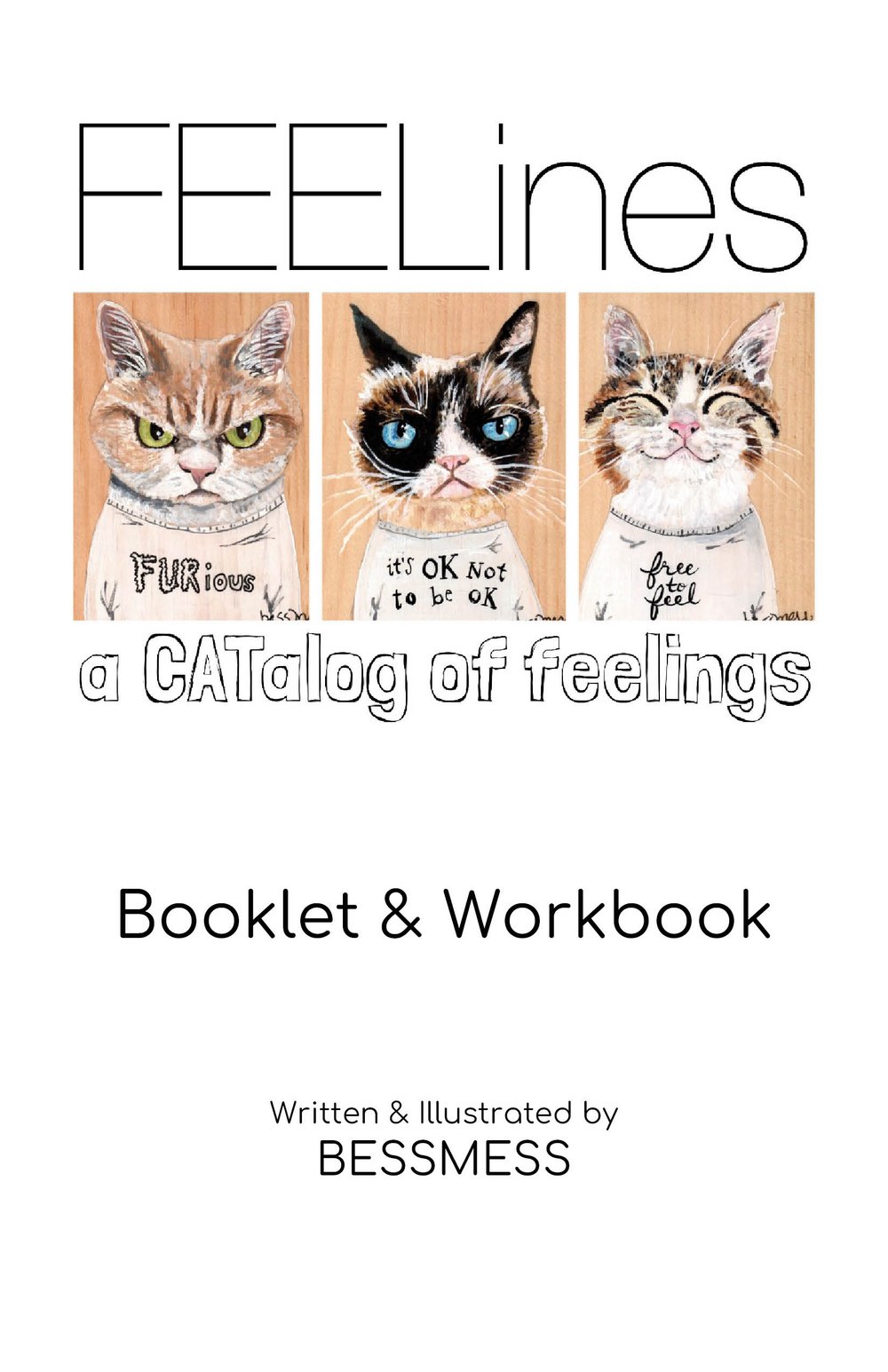 You will find 20 painted cats feeling a wide range of feelings, a list of feelings  and potential ways to help navigate each one, and a 10 pages workbook to help you process your own feelings through drawing and doodling and of course, cats.