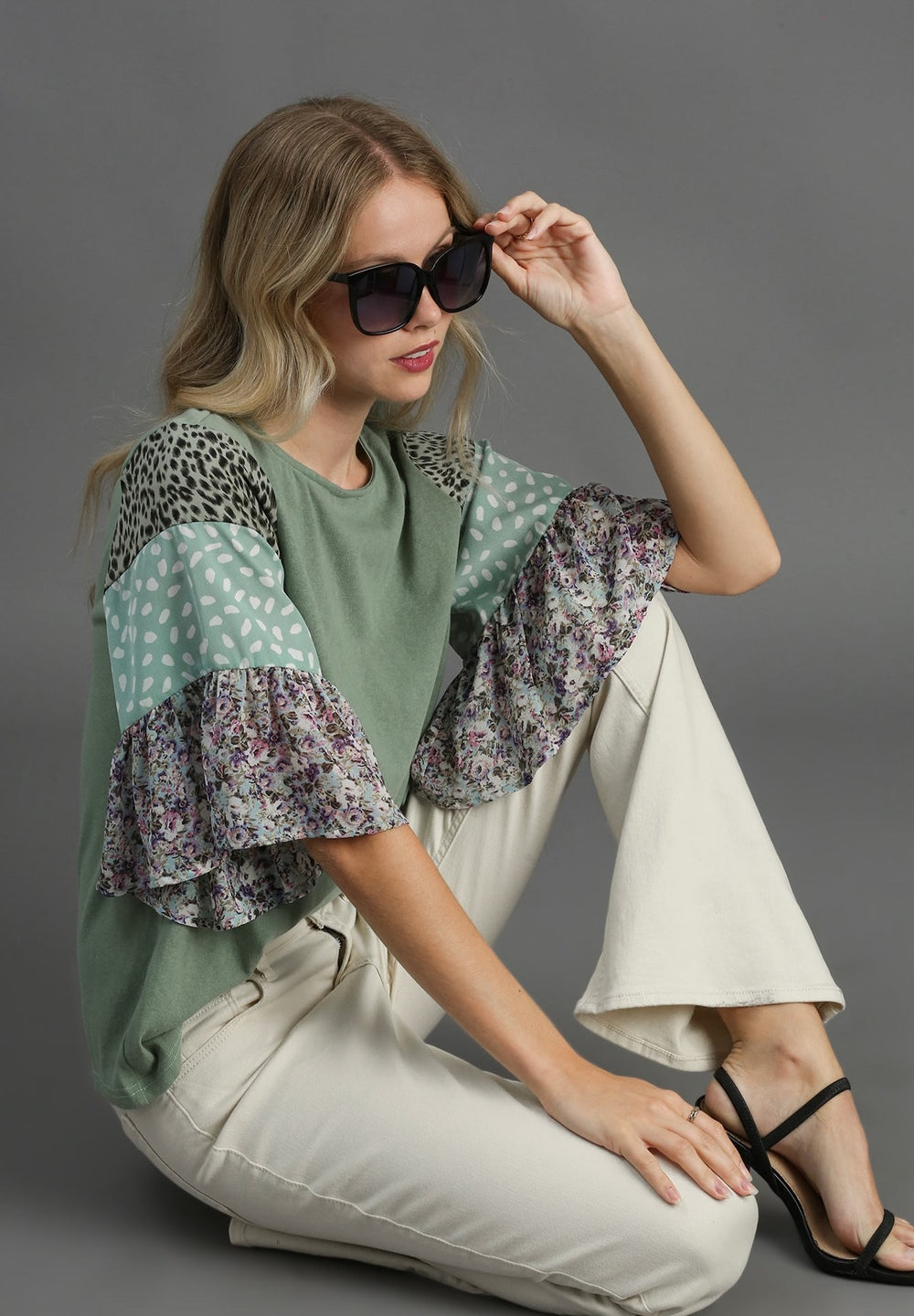 Ruffle Sleeve Raglan Top with Back Tie