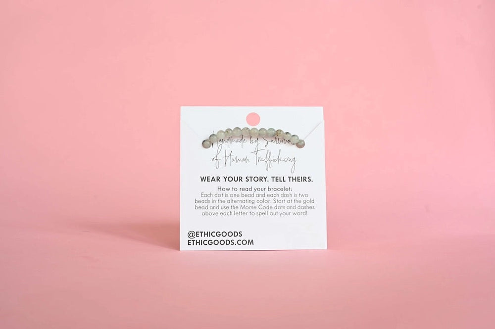 Each piece is handcrafted by the woman it helps to employ. Through wearing this bracelet, you become a meaningful part of her story, and give freedom to women around the world.