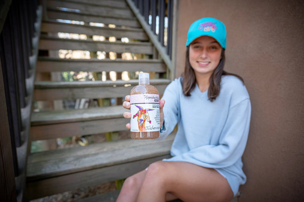 Exfoliating Body Wash with a lovely Tuberose scent.